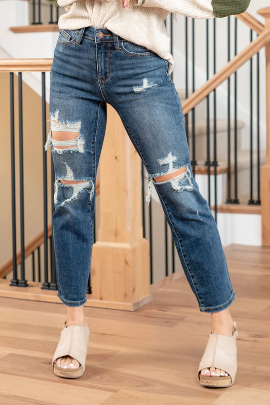Judy Blue High Waist Destroy Cropped Straight-88550