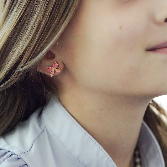 Canvas Style - Madeleine Macaroon & Ribbon Bow Children's Stud Earrings