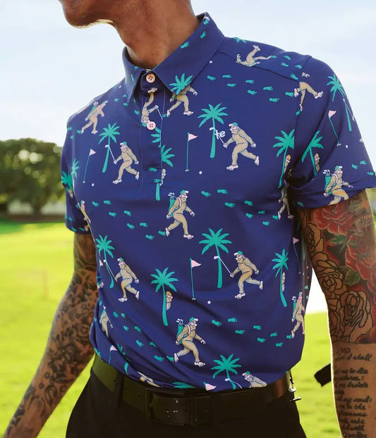 Tipsy Elves - Bigfoot Bogey Men's Golf Shirt - Blue Sasquatch Golf Polo