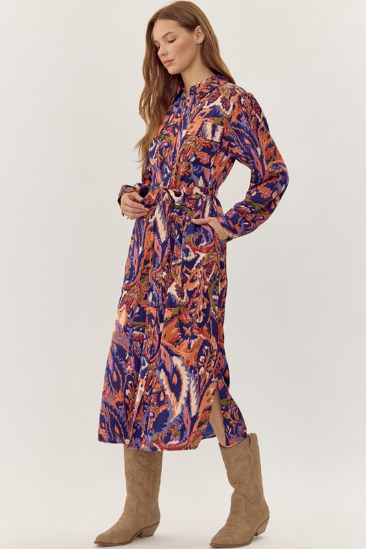 Abstract Printed Square Neck Long Sleeve Tiered Mini Dress