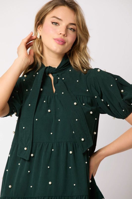 Sold outPrinted 3/4 Sleeve Tiered Mini Dress