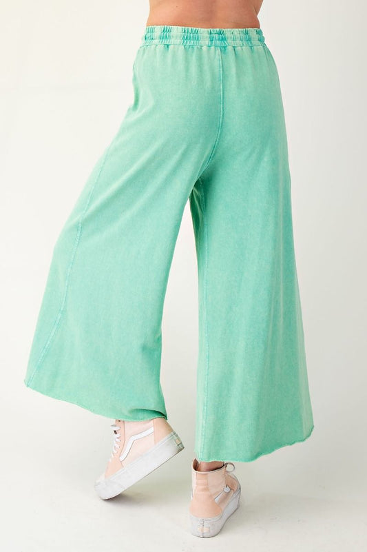 WASHED TERRY KNIT WIDE PANTS-GREEN