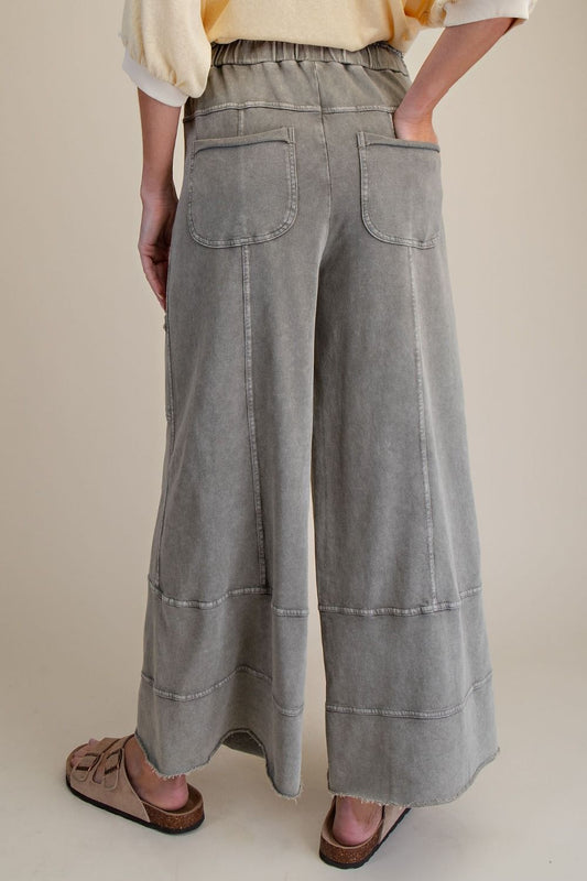 MINERAL WASHED TERRY PALAZZO PANTS-BLACK