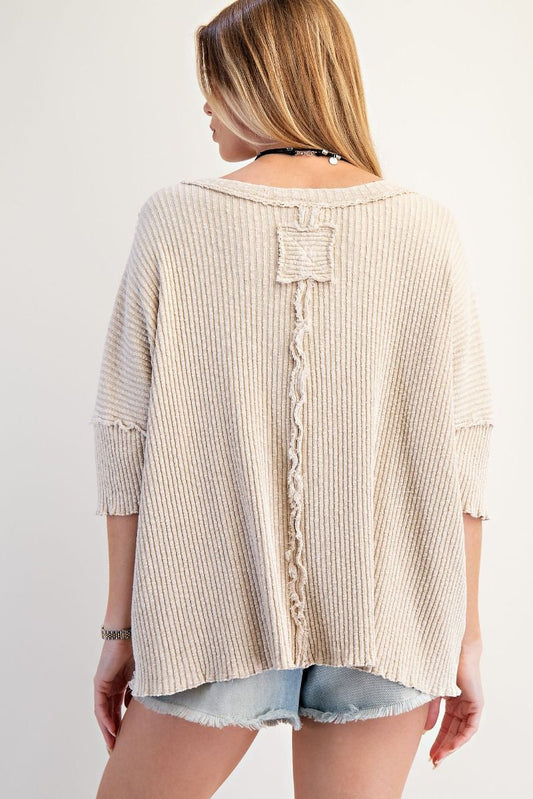RIB KNIT MINERAL WASHED TOP-KHAKI