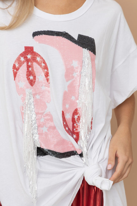 Cotton Sequin Fringe Graphic T Shirt