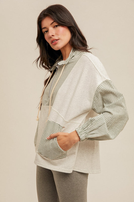 Stripe Mix Half Zip French Terry Sweatshirt