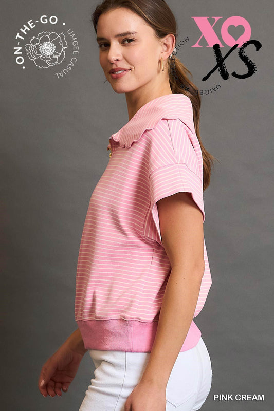 Pink / Striped Zip-Up Collared Top