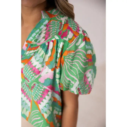 Tropical Print Puff Sleeve Top