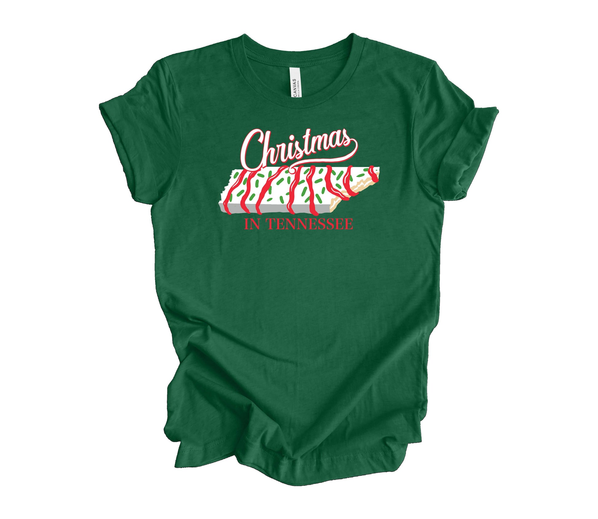 Sweeten up your holiday wardrobe with this festive “Christmas in Tennessee” tee! Featuring the shape of the state decorated like a frosted Christmas cookie—complete with icing drizzle and colorful sprinkles—this design brings Southern cheer to your seasonal style. Printed on a rich green tee, it’s perfect for tree lightings, holiday markets, or cozy family gatherings.