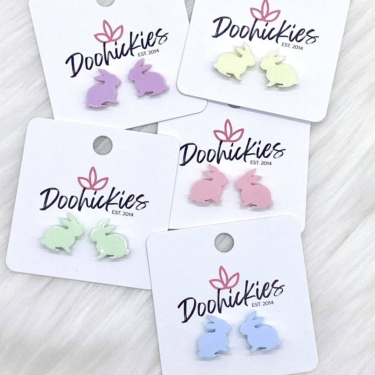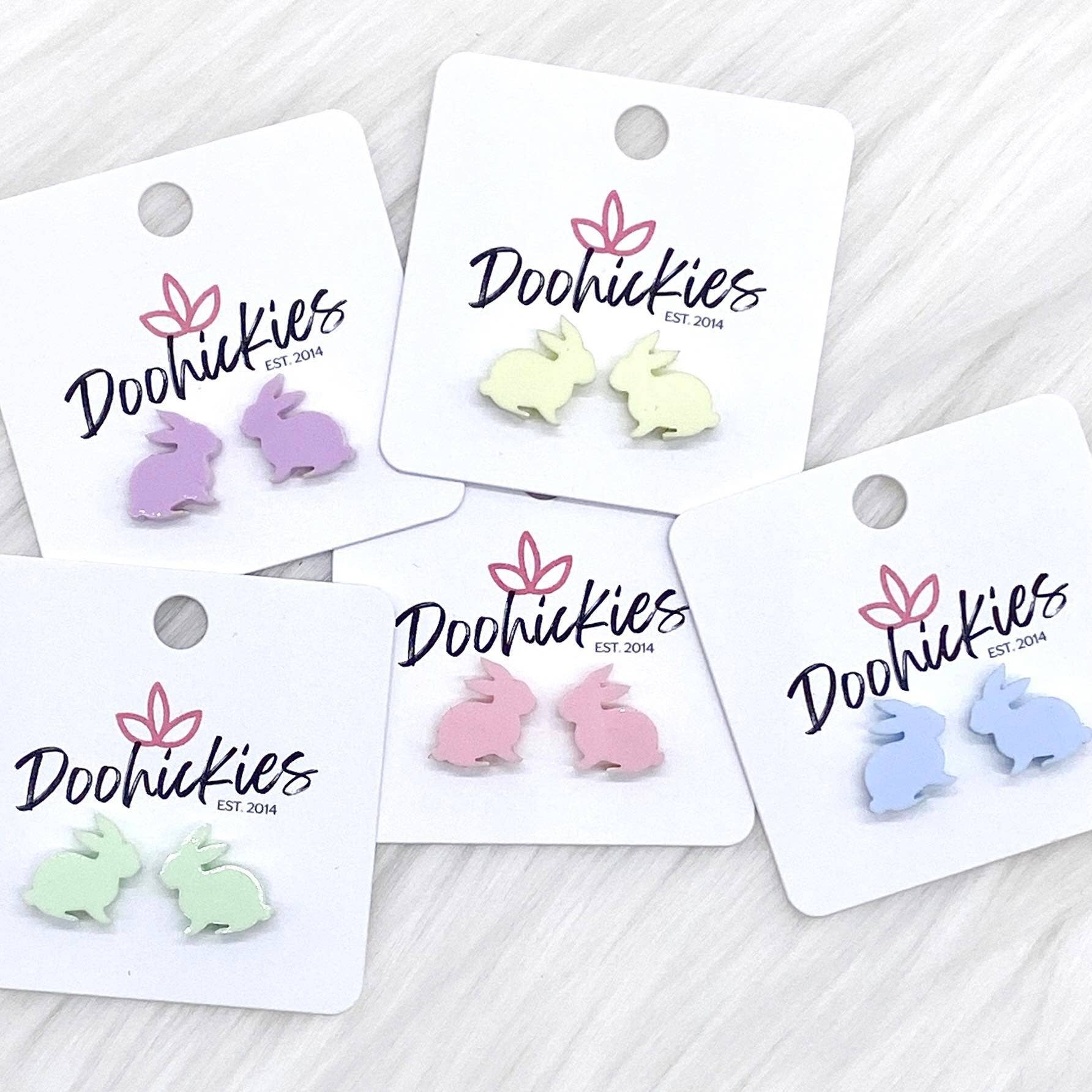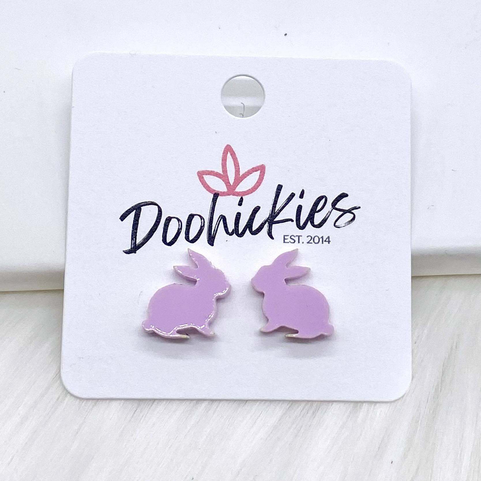 Doohickies - 15mm Pastel Bunny Rabbits -Earrings: Purple